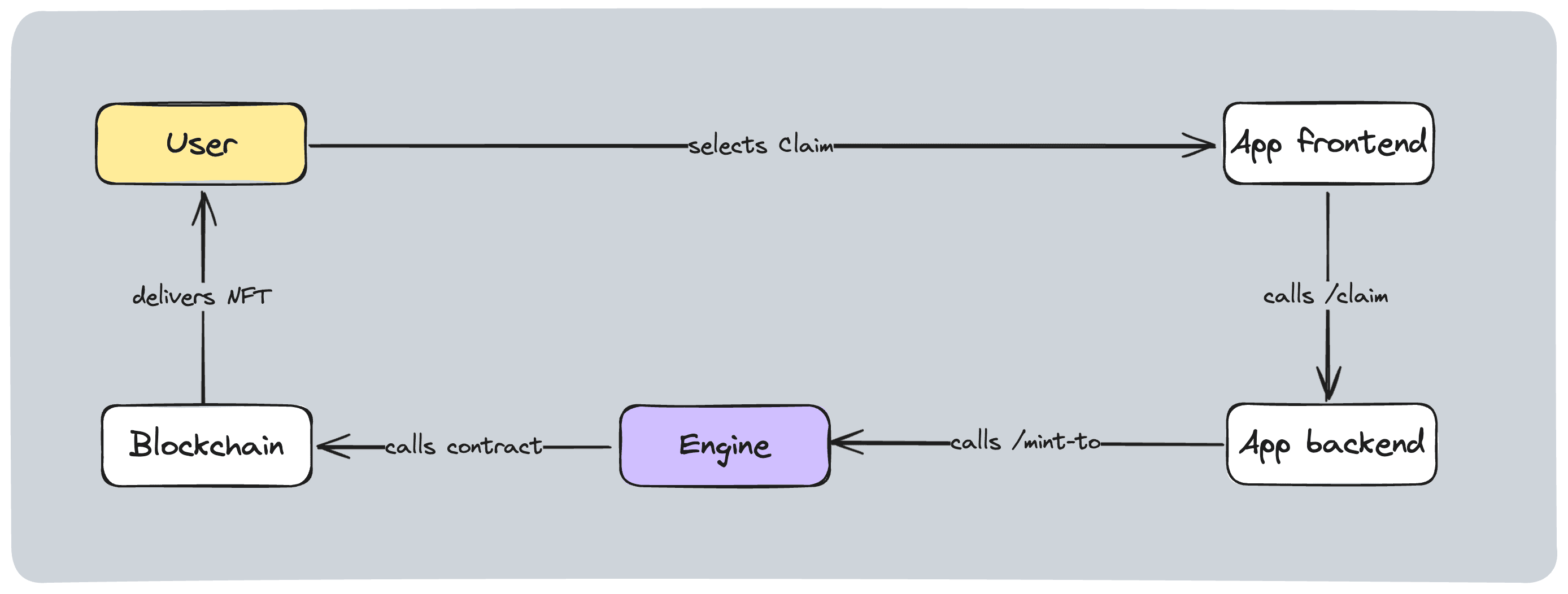 component to prompt the user for their wallet. The Claim button calls POST /api/claim